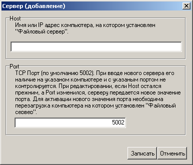 · «Port» - вводится номер порта файлового сервера. Это идентификационный номер процесса на компьютере, на котором установлен «Файловый сервер».