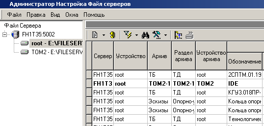 Если в режиме «Архив» перенести документ из одного раздела архива в другой и разделы архива находятся на разных томах файлового сервера, то перенесенные документы будут выделены жирным шрифтом и попадут в список документов для переноса. Том, содержащий файлы для переноса, также будет выделен жирным шрифтом: