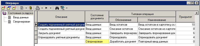· «Состояние документа». Выбирается из справочника (см. раздел 2.2.2) и определяет состояние документа, в котором будут выполняться типовые операции.