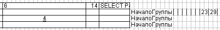 · Служебное слово «НачалоГруппы» или «НачалоГруппы1» или «НачалоГруппы2» и т.д. Строка будет формироваться в начале каждой группы записей в источнике данных в соответствующей группировке.