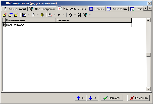 Закладка «Настройки отчета» на форме редактирования выбранного типа набора данных предназначена для определения констант, которые могут быть задействованы при формировании отчета. Значения всех констант доступны в процессе формирования отчета на только чтение и не требуют API.