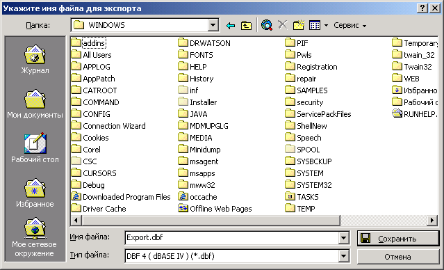 Алгоритм формирования документа такой же, как у документа с видом «Ведомость». После завершения формирования выдается диалог для сохранения документа в виде файла формата «dBASE IV».