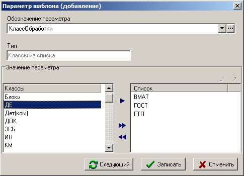 В форме редактирования бланка на закладке «Параметры» (см. раздел 17.2.8) может быть добавлен параметр «КлассОбработки», значение которого определяет классы, для которых будет формироваться этот документ. Если параметр «КлассОбработки» не задан, то обрабатываются все классы. Тип параметра - «Классы из списка». В список значений параметра записывают обозначения классов операций.