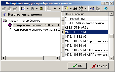 Появится окно для выбора шаблона бланка, из которого будут скопированы запросы: