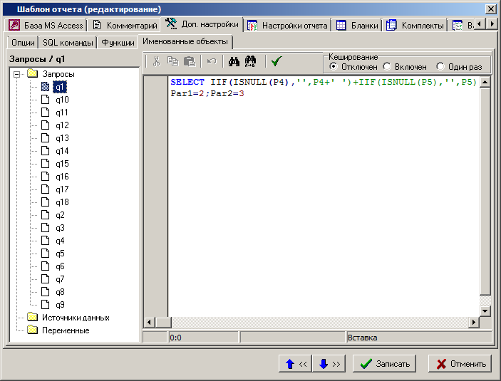 Перенос запросов из шаблона бланка в именованные объекты на закладке «Доп. настройки» может быть автоматизирован с помощью команды контекстного меню «Преобразовать данные старого построителя отчета» в дереве именованных объектов.