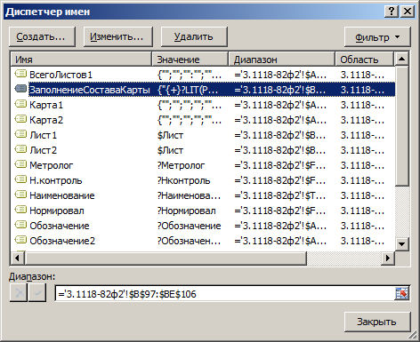 Примечание. Если имя диапазона содержит больше 253 символов, оно не может быть выбрано из поля Имя.