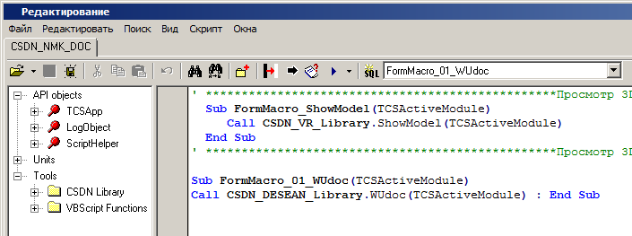 Для удобства редактирования текста модуля редактор выделяет цветом элементы языка VBScript - ключевые слова, операторы, комментарии и другие синтаксические элементы.