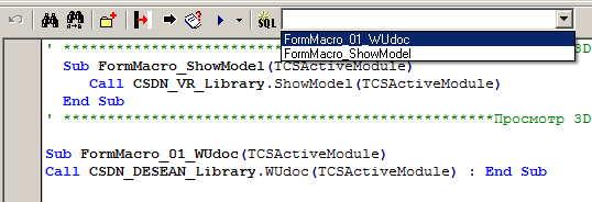 При значительном количестве имеющихся в модуле процедур удобно использовать элемент панели управления «Процедура» для просмотра общего списка и позиционирования курсора на необходимой процедуре.