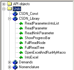 Ветка «CSDN Library» содержит список объектов TechnologiCS API, а также их методы и свойства.