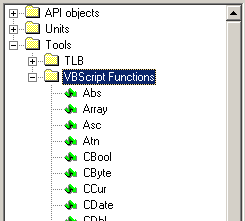Ветка «VBScript Functions» содержит список стандартных функций VBScript.