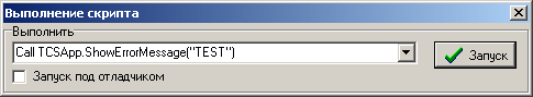 Кнопка «Запуск» выполняет введенную команду. Если установлен флаг «Запуск под отладчиком», то выполнение процедуры происходит под отладчиком (см. раздел 18.4).