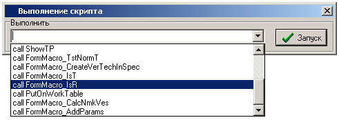 При выборе позиции из списка, соответствующий текст заносится в поле «Выполнить».