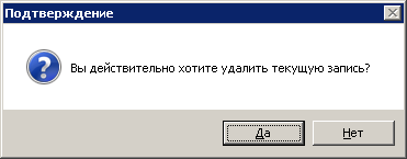 При нажатии кнопки «Нет» удаления не происходит, в противном случае запись будет удалена.