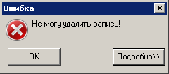 Если на запись существует ссылка в базе данных, выдается диагностическое сообщение о невозможности удаления следующего вида: