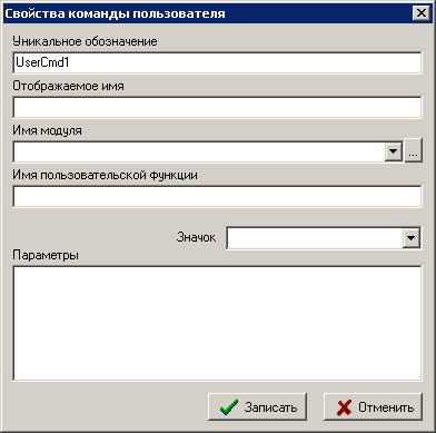 Для добавления команды пользователя необходимо в области «Скрытые элементы» выполнить двойной щелчек левой клавиши мыши. При этом отобразится окно следующего вида: