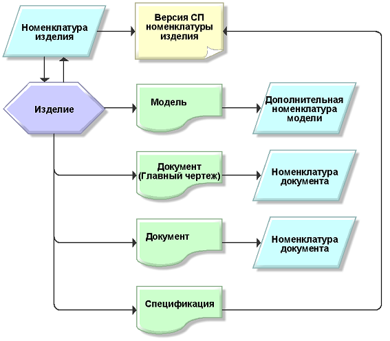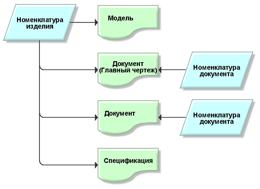 Далее приведена схема связи данных об изделии.