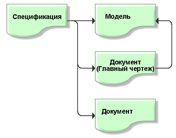 При использовании способа хранения файлов CAD системы, в котором файл модели и файл чертежа содержатся в файловом составе одного документа TechnologiCS, в рамках редактора спецификаций этот документ будет одновременно являться и документом модели, и конструкторским документом (Главный чертеж).