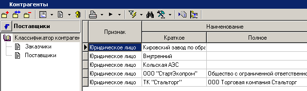 и содержит список контрагентов предприятия, структурированный произвольным образом.